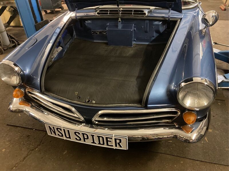 Der Spider ist von 06/67 und wurde bei der Restauration von alfarot komplett auf geminiblau96 umlackiert.