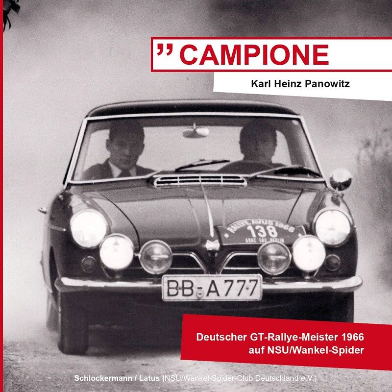 Anlässlich des 60. Jubiläums des Gewinns der Deutschen GT Rallye-Meisterschaft 1966 von Karl Heinz Panowitz auf NSU/Wankel-Spider haben Martin Schlockermann und Ulrich Latus vom NSU/Wankel-Spider-Club die sehr interessante Rennfahrergeschichte von Karl Heinz Panowitz in diesem über 200-seitigen fest gebundenen Buch zusammengefasst.